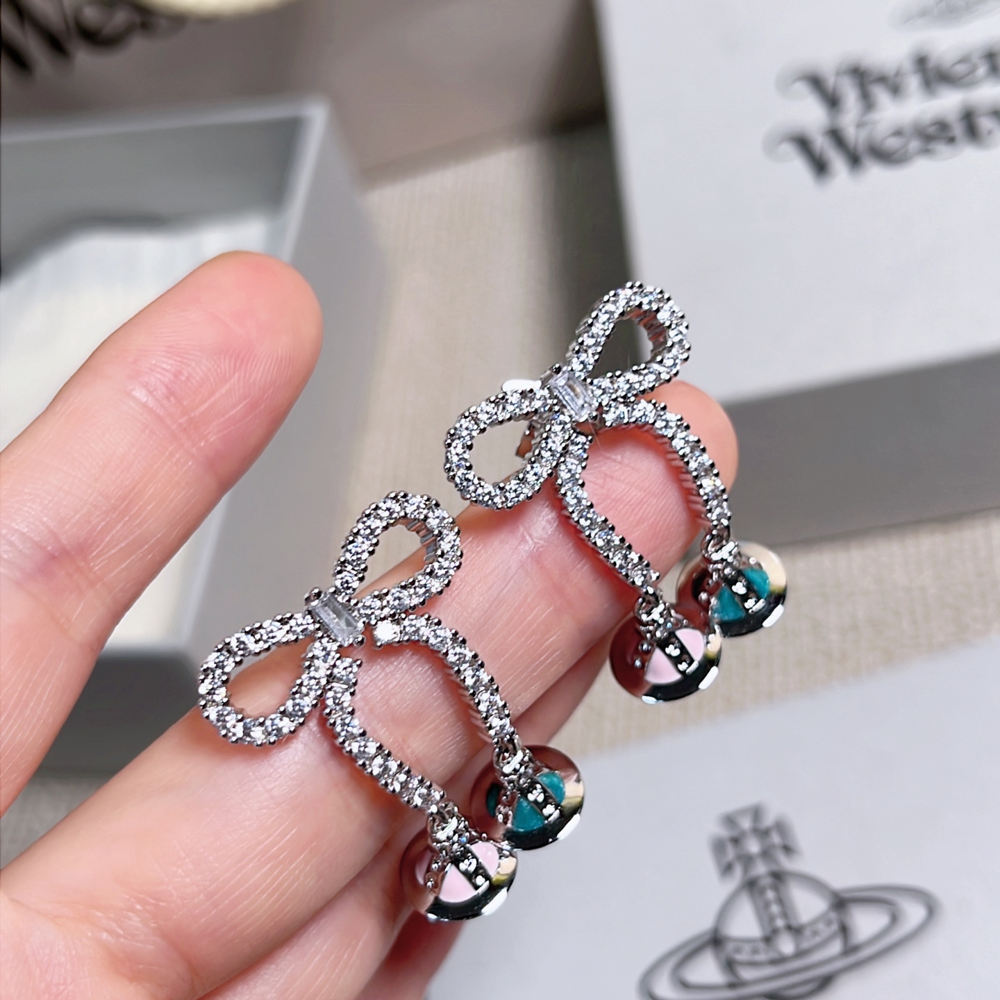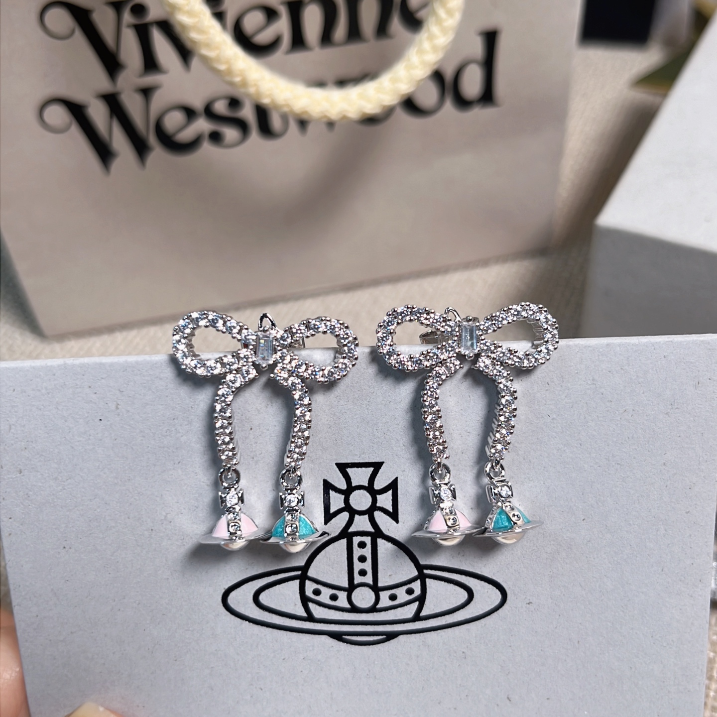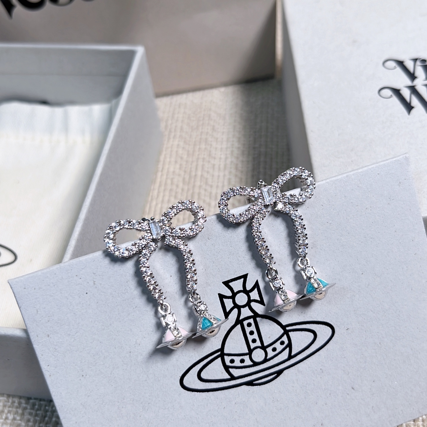 2025早秋新品 Vivienne Westwood 立體彩色星球蝴蝶結耳釘 精品 高仿