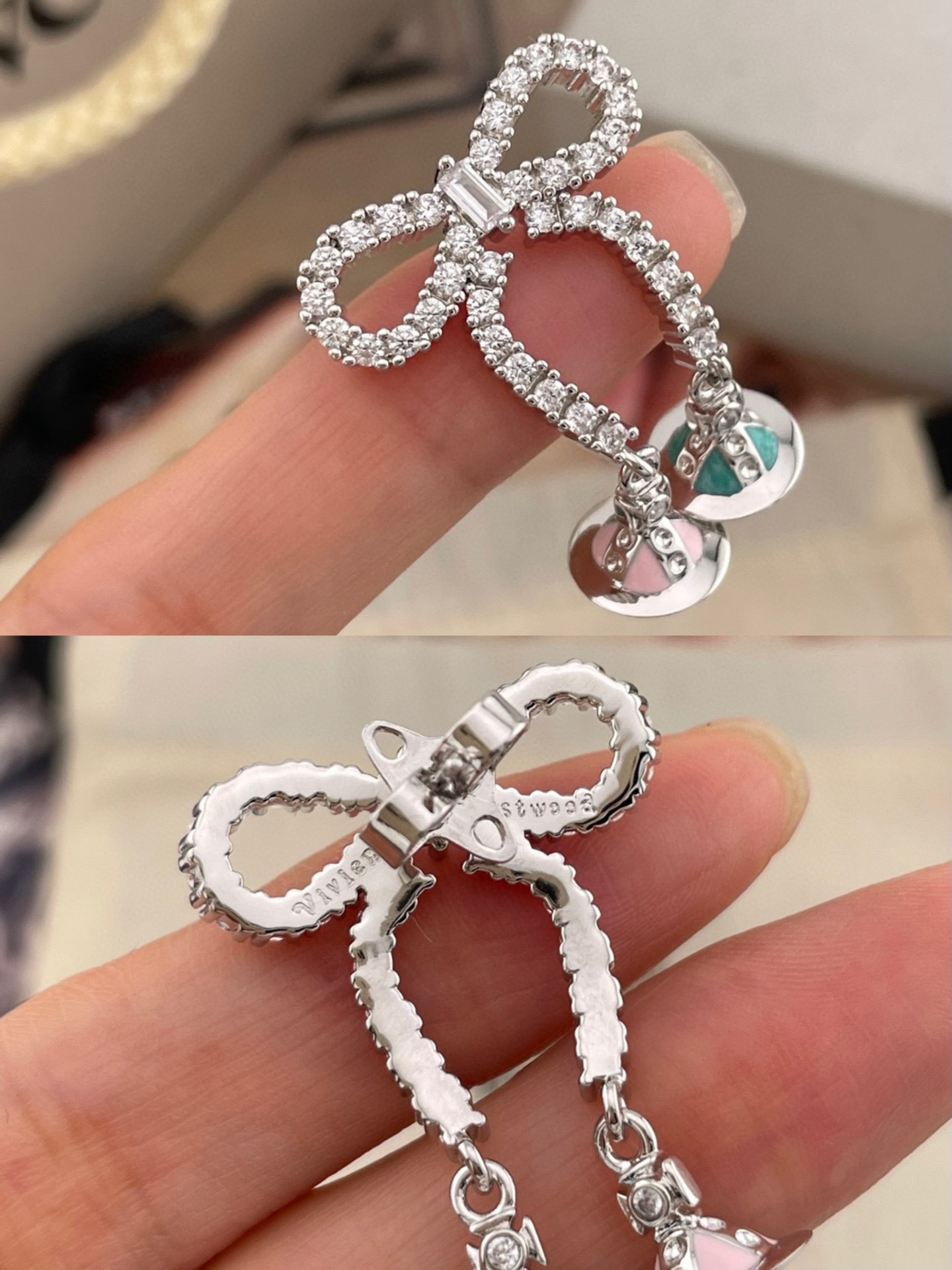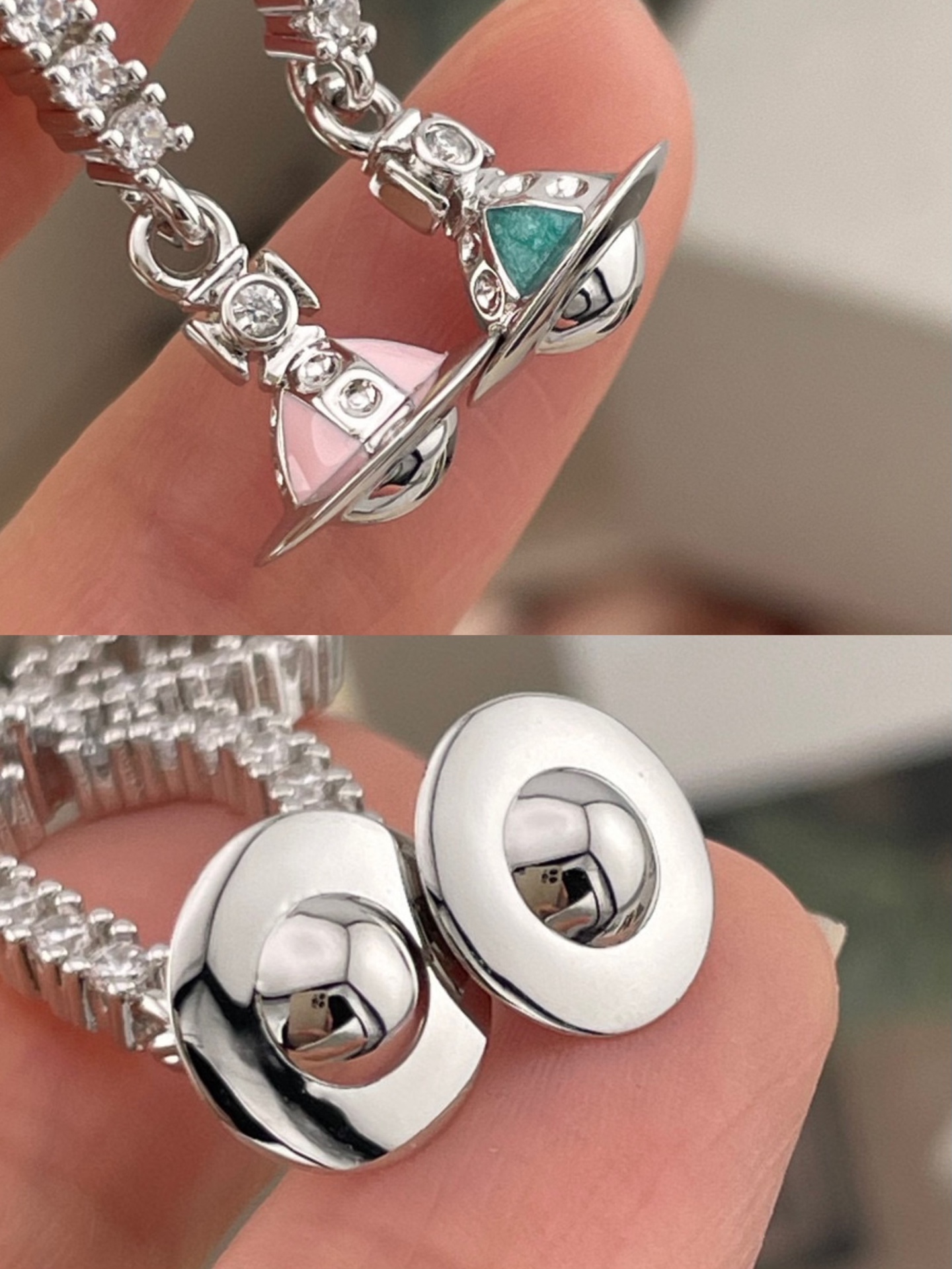 蝴蝶結滿鑽細節則像是最亮眼的點睛之筆,拿在手上就能感受到它的份量與質感,光澤感細膩,佩戴起來絕對搶眼。特別是原單的珐瑯細節融入星球設計中,不僅讓整體更有層次,也平衡了俐落與甜美,完美詮釋「可鹽可甜」的魅力。