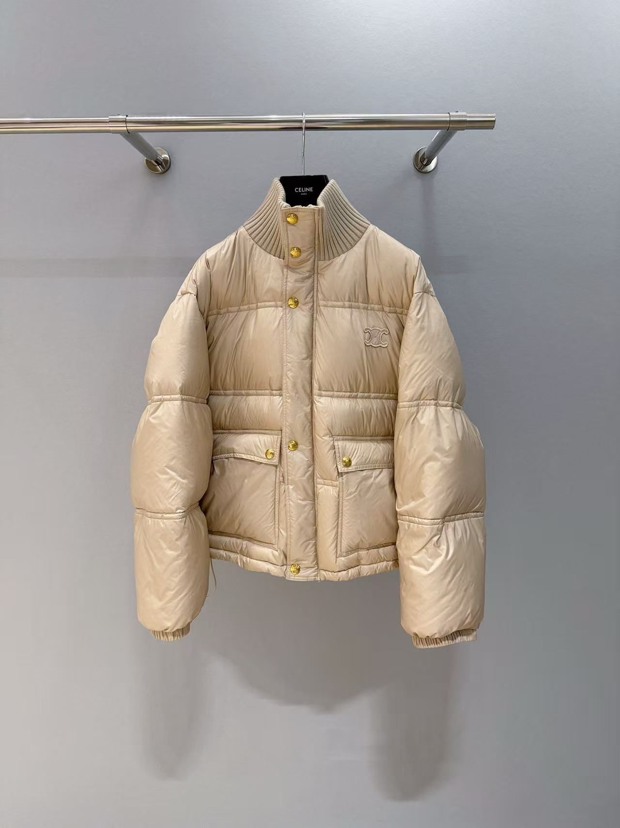 2025早秋 Celine 撞色針織領奢侈品羽绒外套