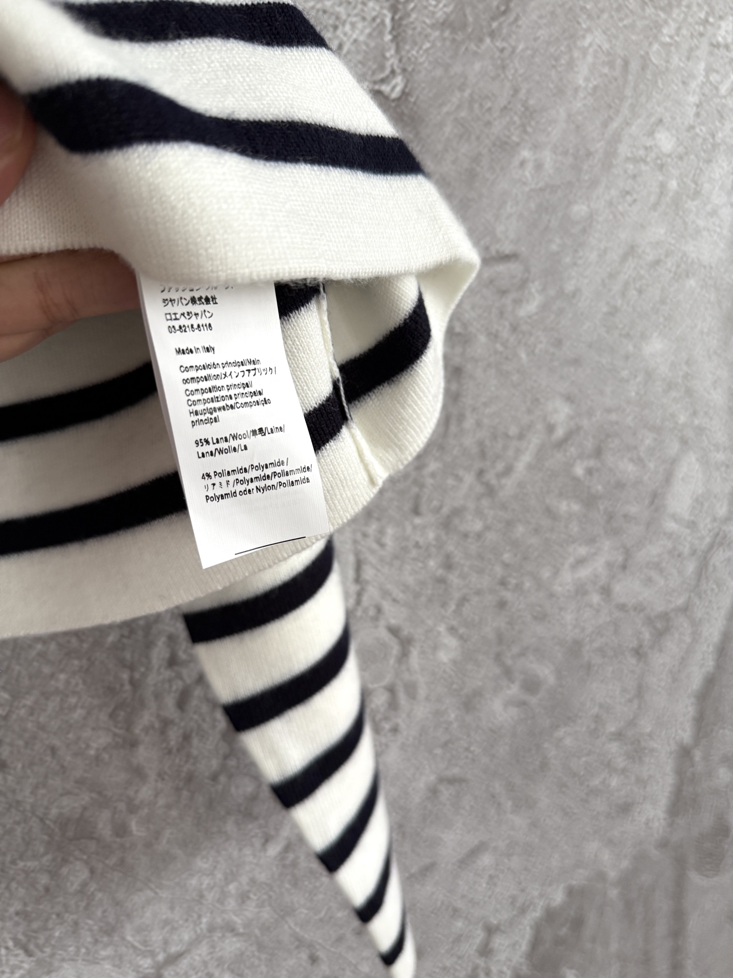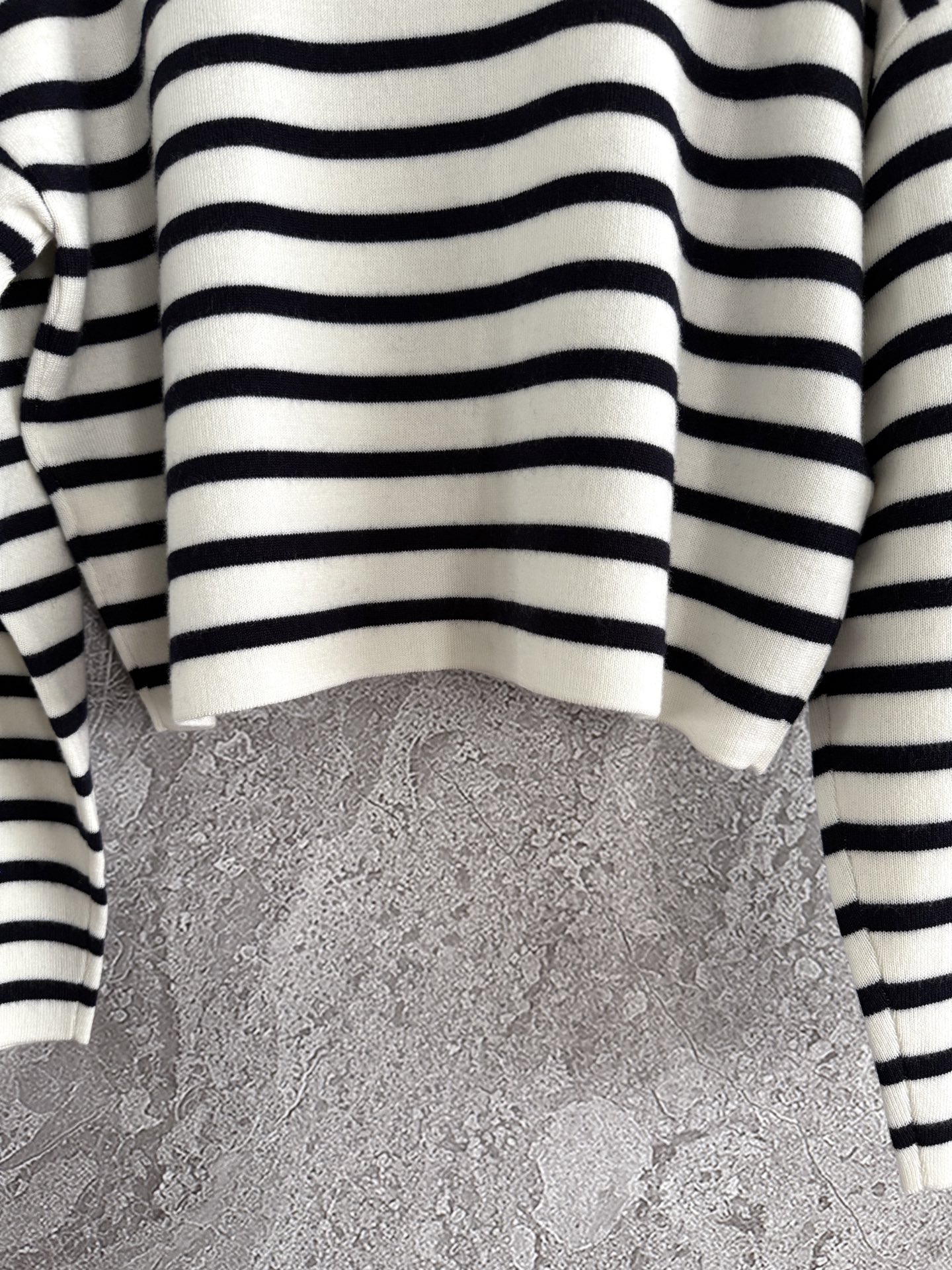 這款毛衣用料相當講究,選用精紡羊毛混紡紗,材質密度與支數都高於一般針織,穿上去能感受到紮實的份量感。
