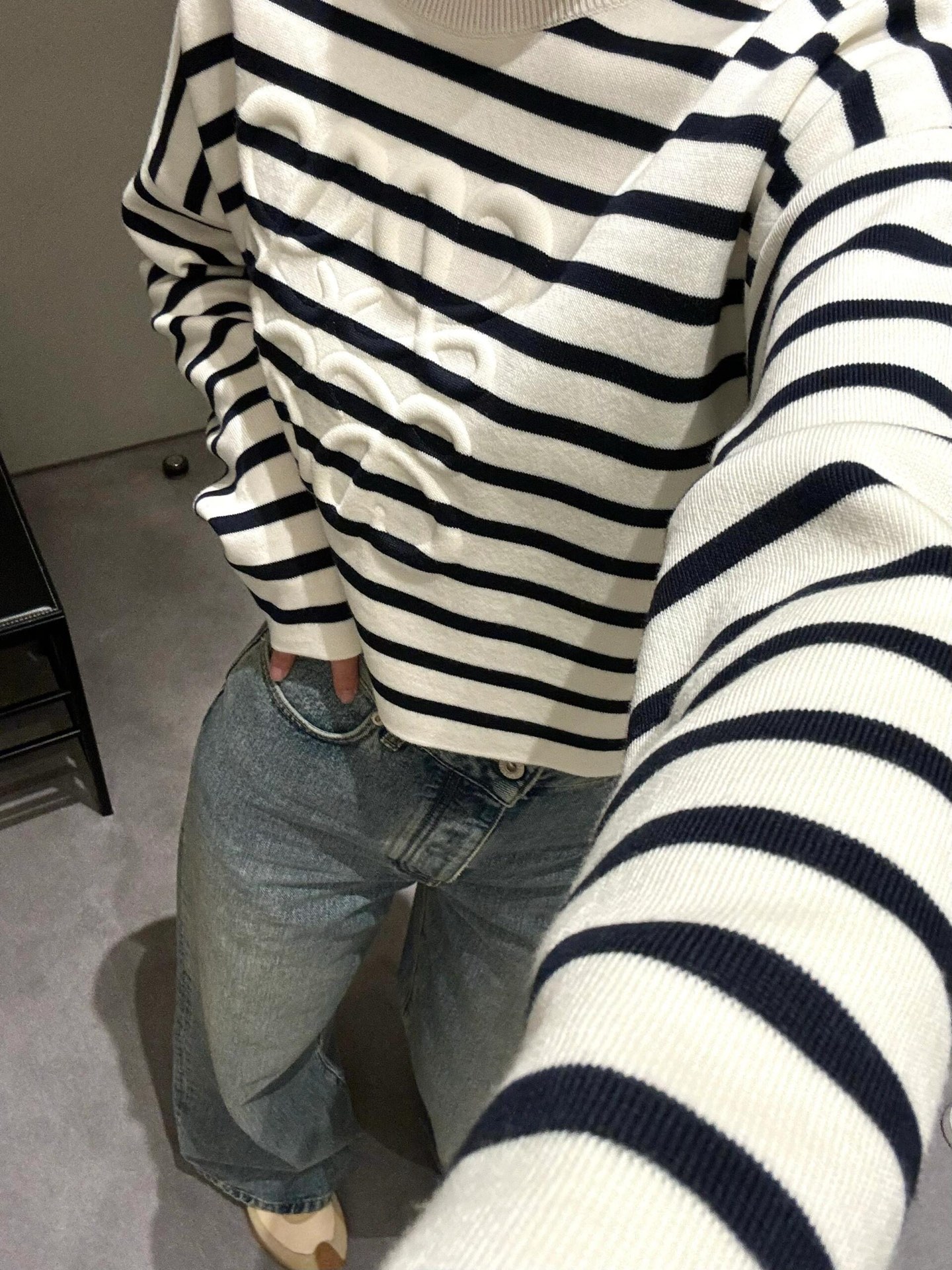 整體來說,這件浮雕毛衣無論在工藝還是材質上都非常講究,短款版型更是對身形比例有極佳的修飾效果。