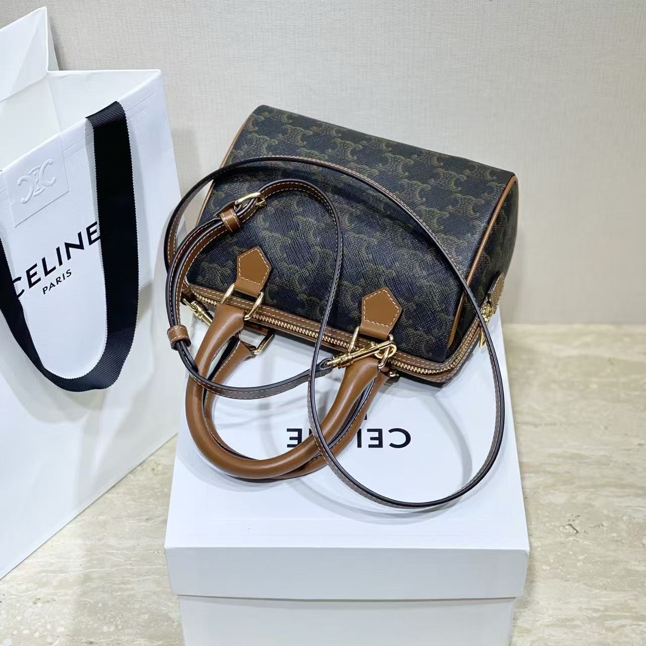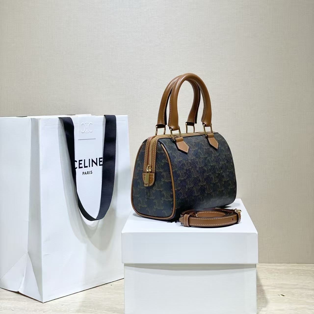 雙十一重磅福利款-Celine Triomphe小號波士頓包(不配盒子) 高仿 精品