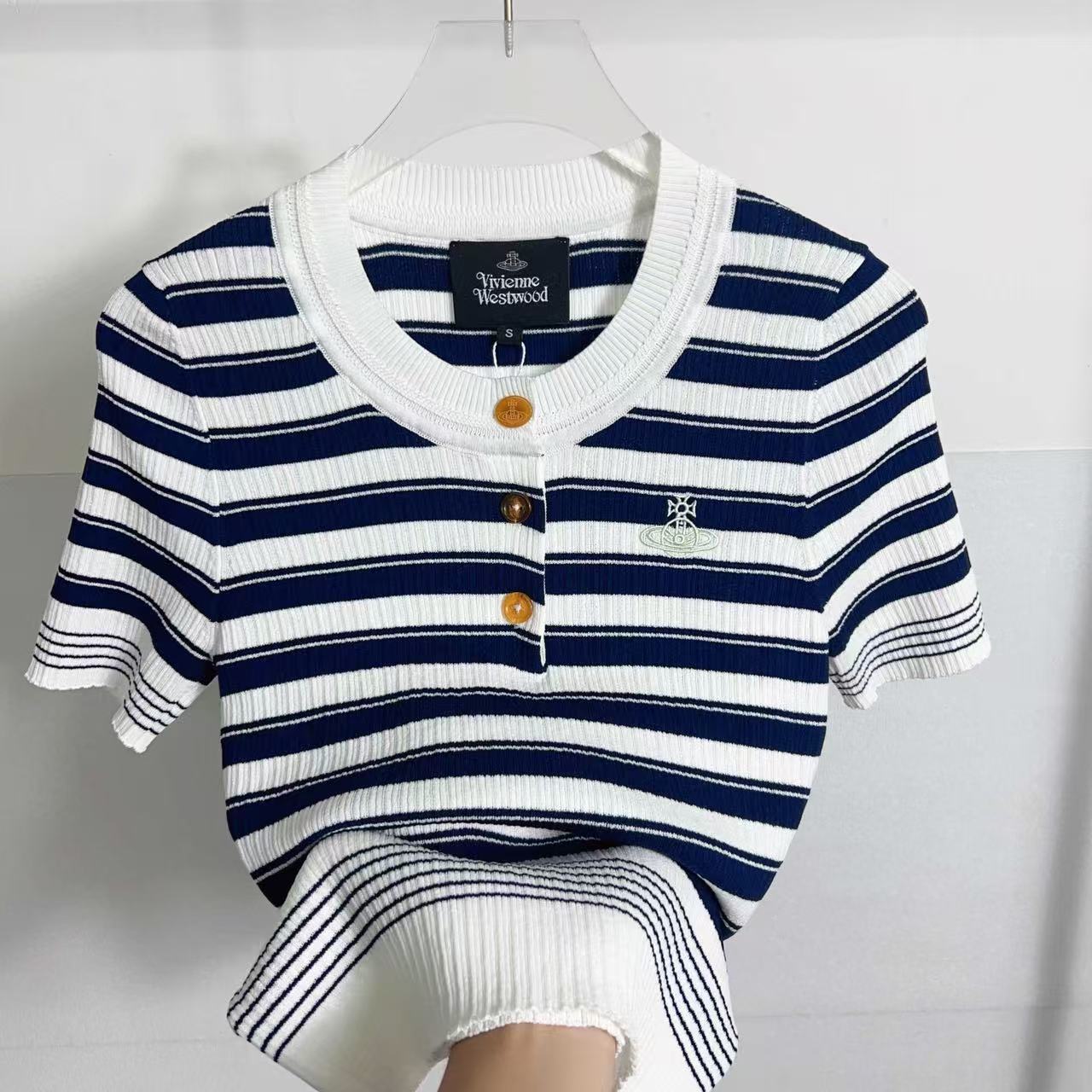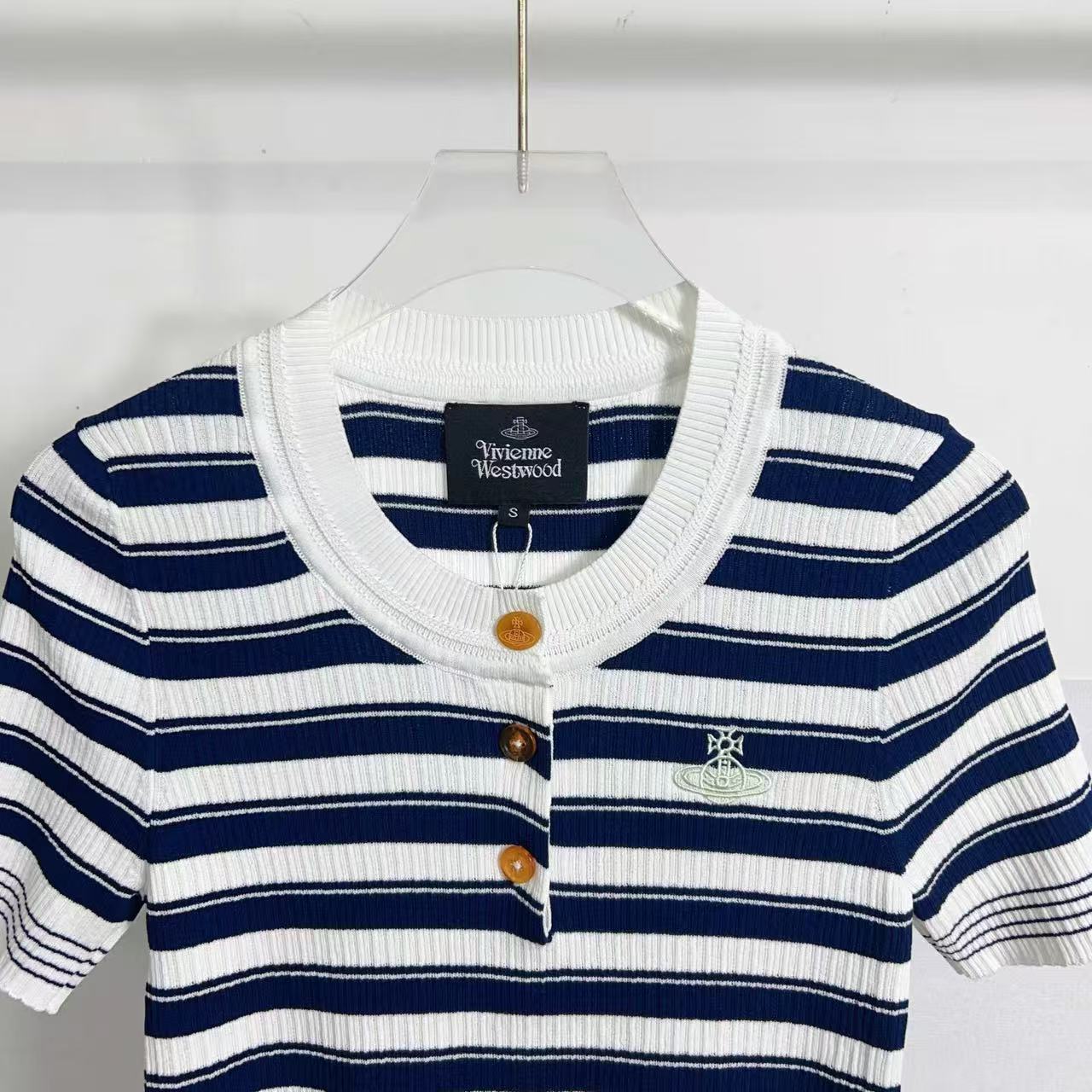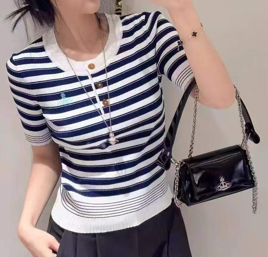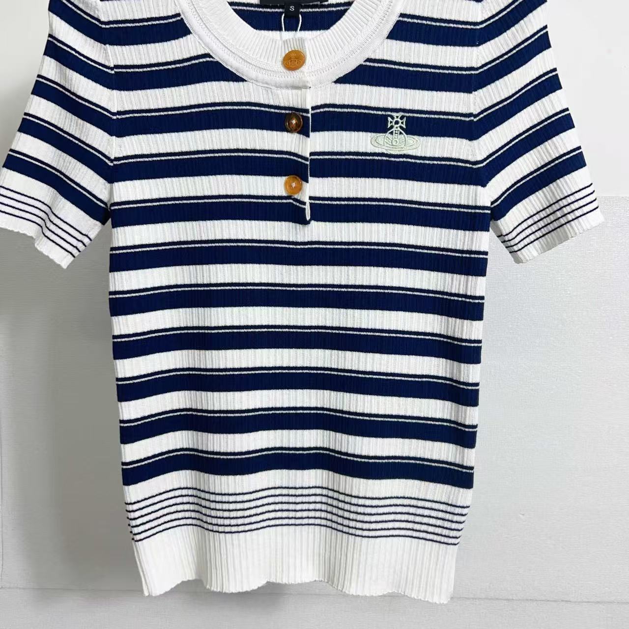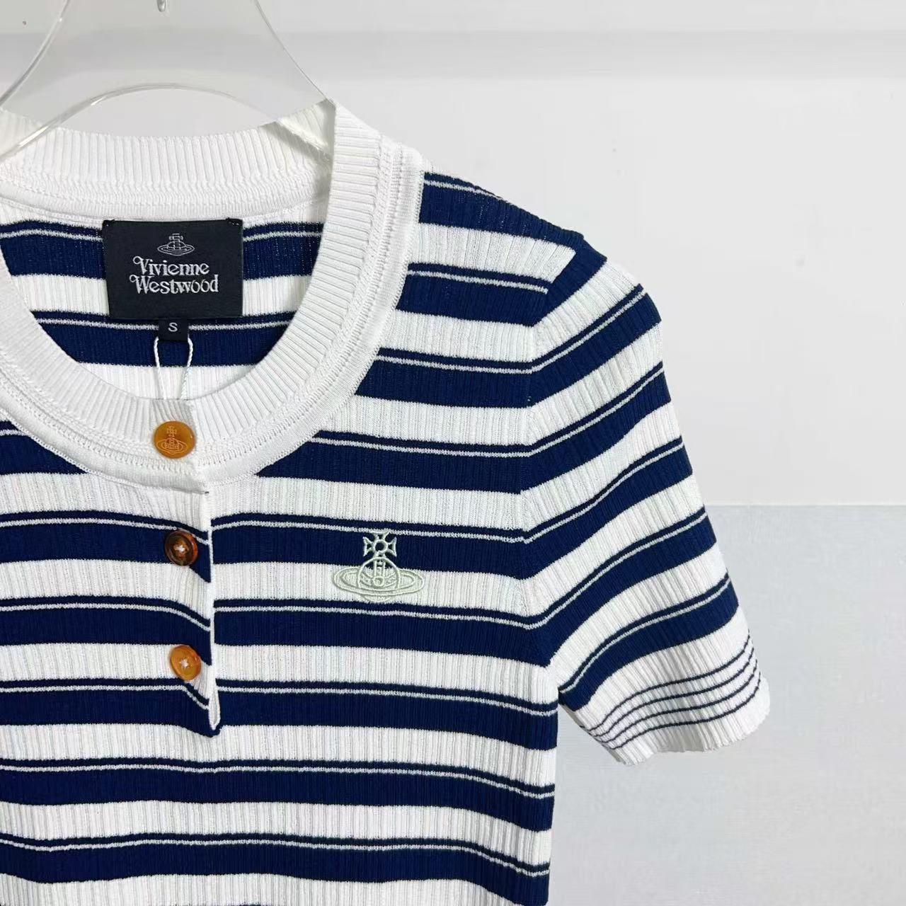 2025夏季新品 Vivienne Westwood 土星刺繡條紋針織短袖 精品 時尚