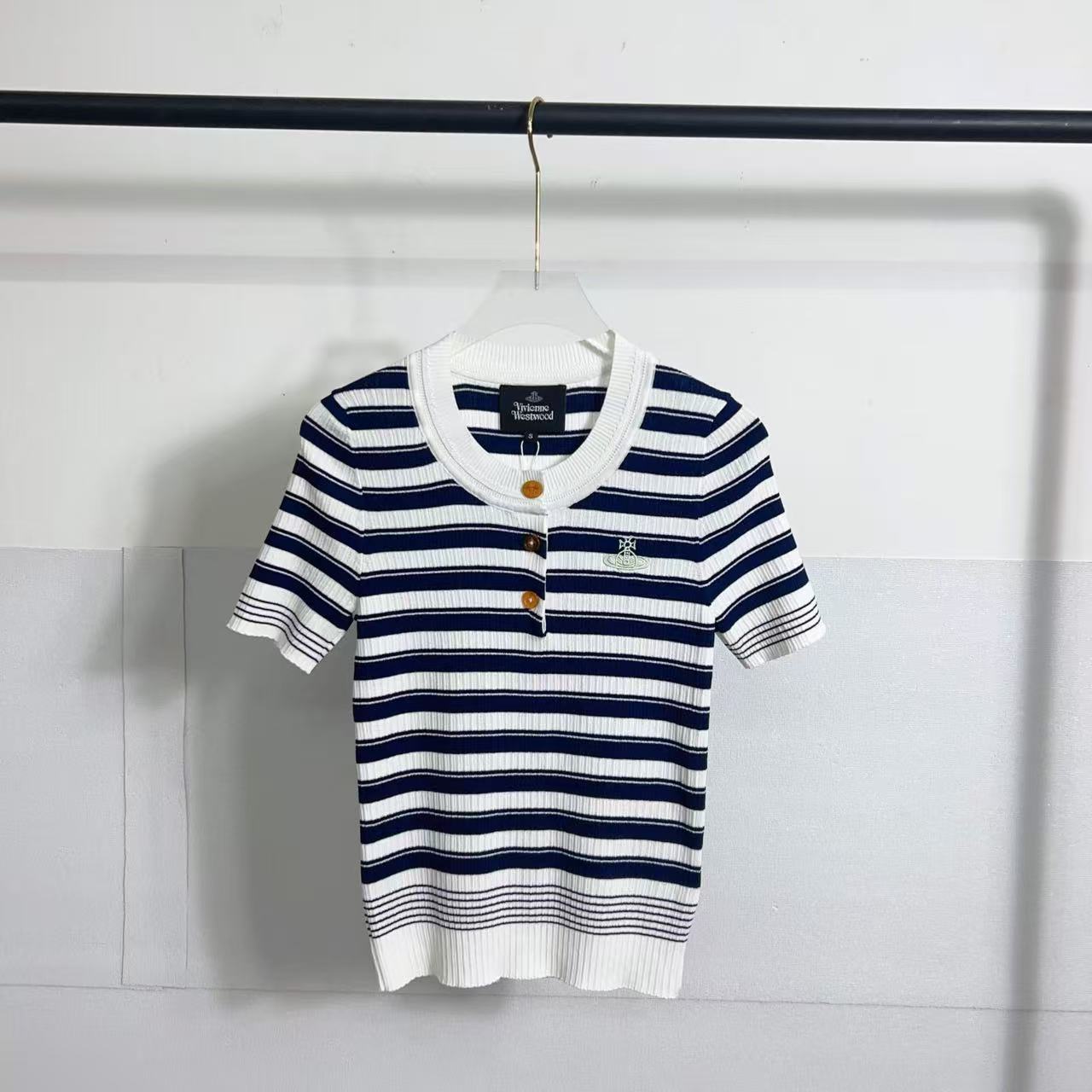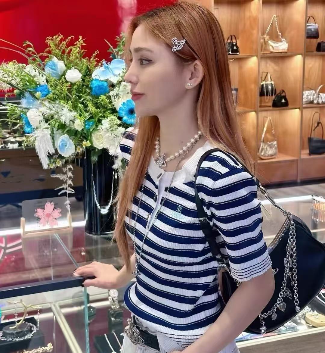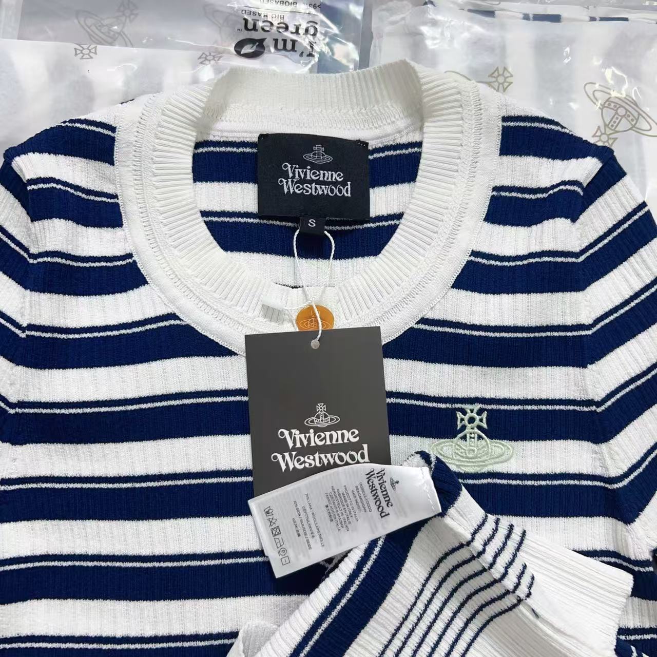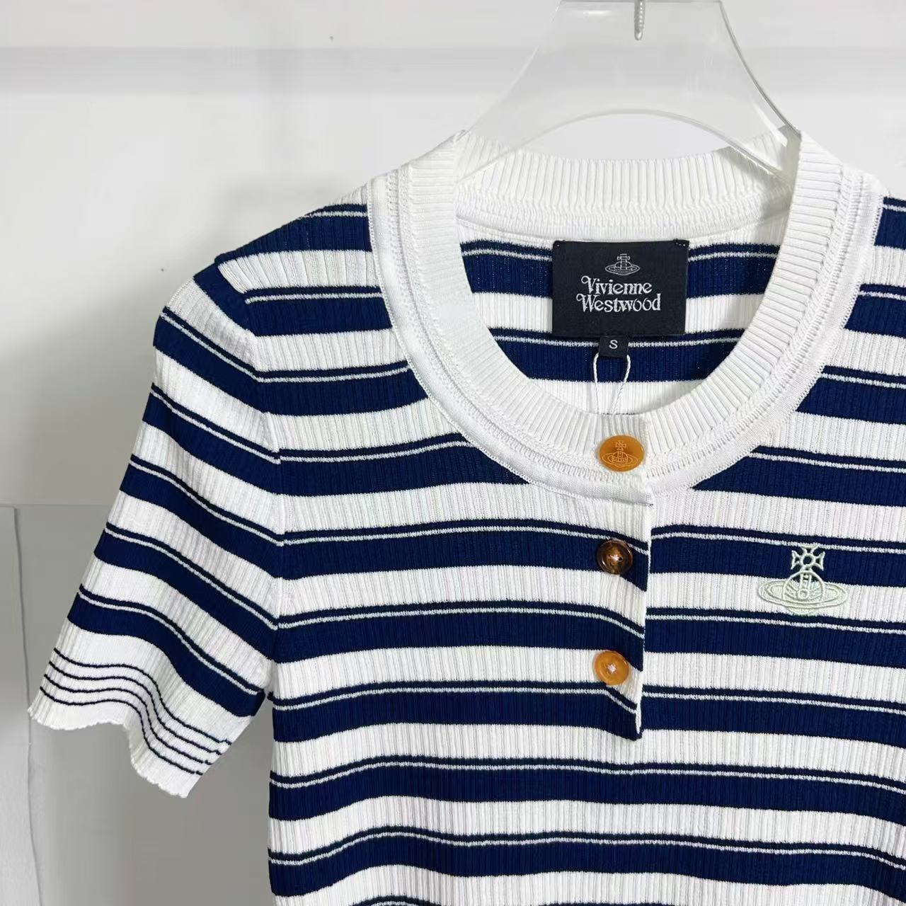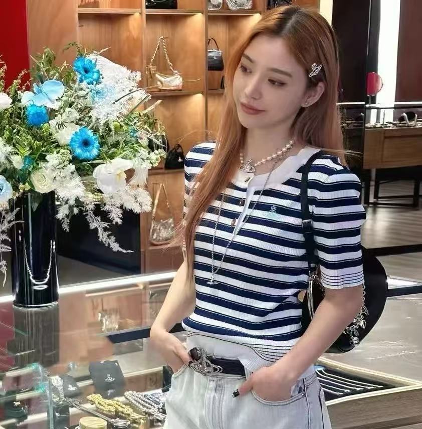 2025夏季新品 Vivienne Westwood 土星刺繡條紋針織短袖 精品 時尚