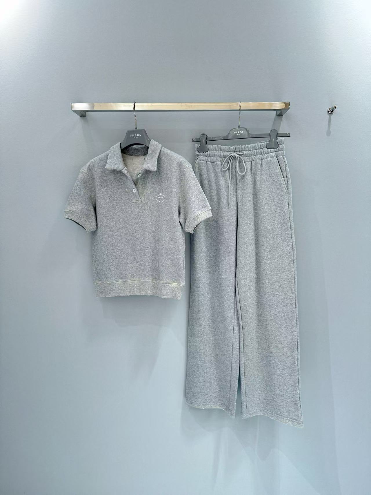 2025早秋 Prada 灰色polo短袖 精品復刻,整體以做舊字母印花設計,帶出復古運動感。