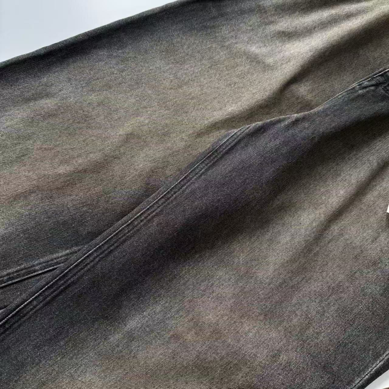 這款牛仔長褲以直筒修身版型為基調,線條俐落、比例完美,輕鬆拉長腿部視覺。局部漸變效果透過高壓噴槍在特定部位摩擦,層次自然不突兀;磨砂技術製造獨有紋理圖案,每條褲子都像手工藝術品。做工繁複耗力,卻讓毛鬚與色塊完美融合,復古街頭感直接拉滿。無論單穿還是內搭長靴,這條褲子都能為你的造型注入滿滿的個性做舊風!