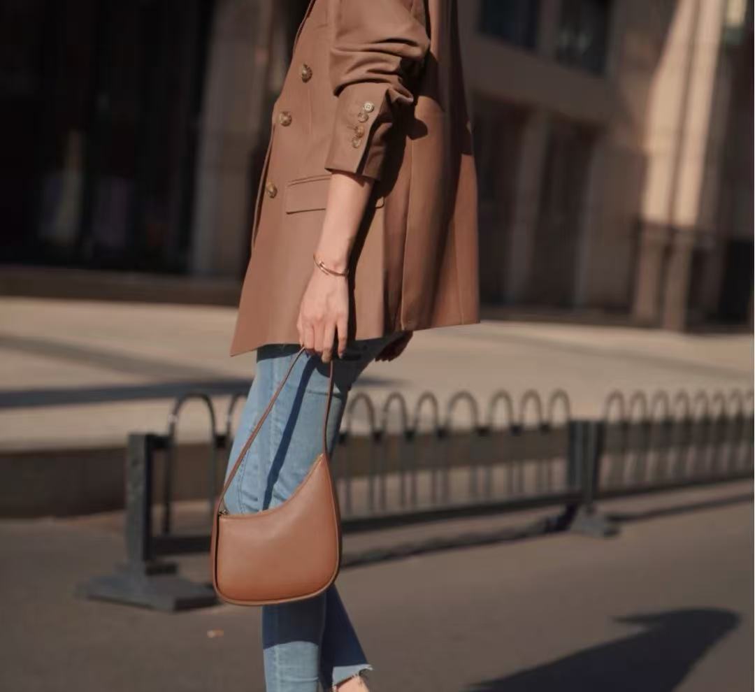 以不規則半月造型搭配經典棕色調,這款腋下包完美融合復古與現代美學,輕便又時髦,絕對是2025年穿搭凹造型的年度神器!快來一起看看它的魅力所在吧!