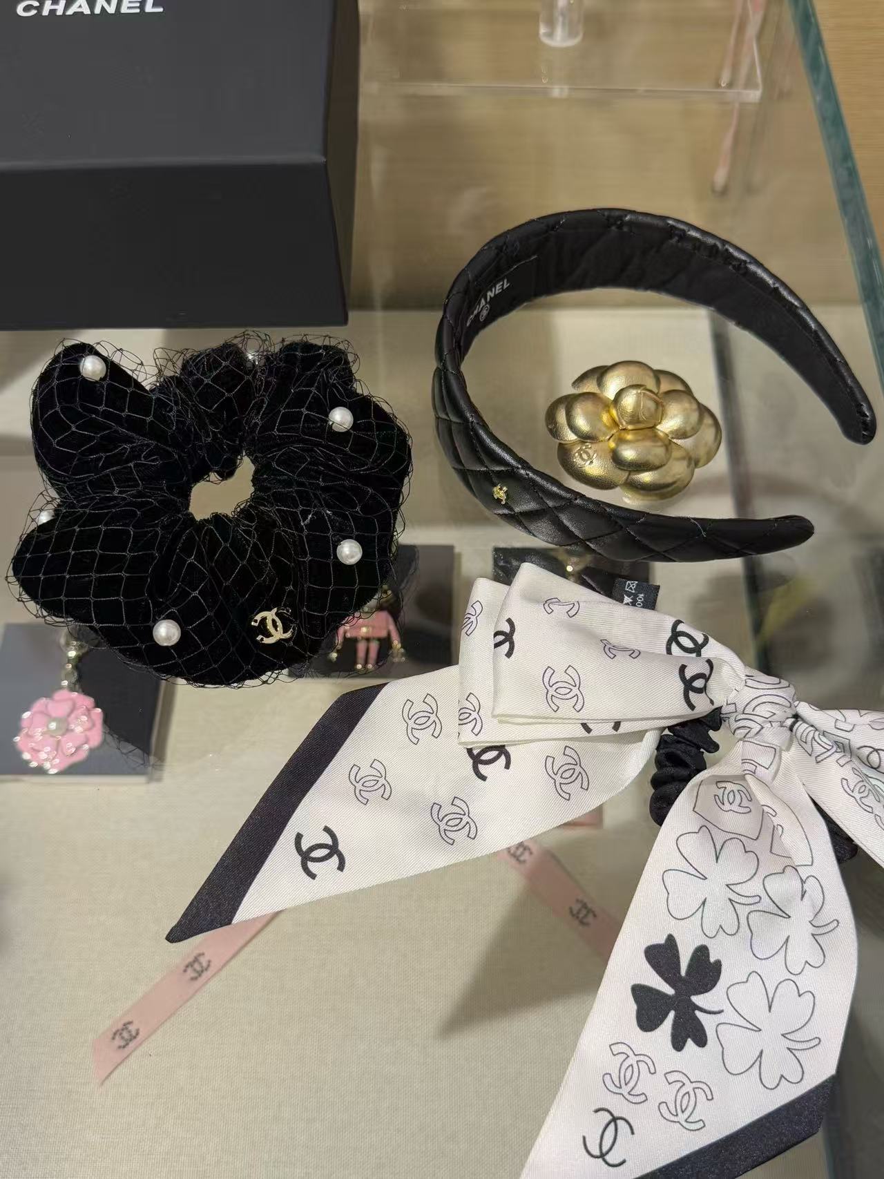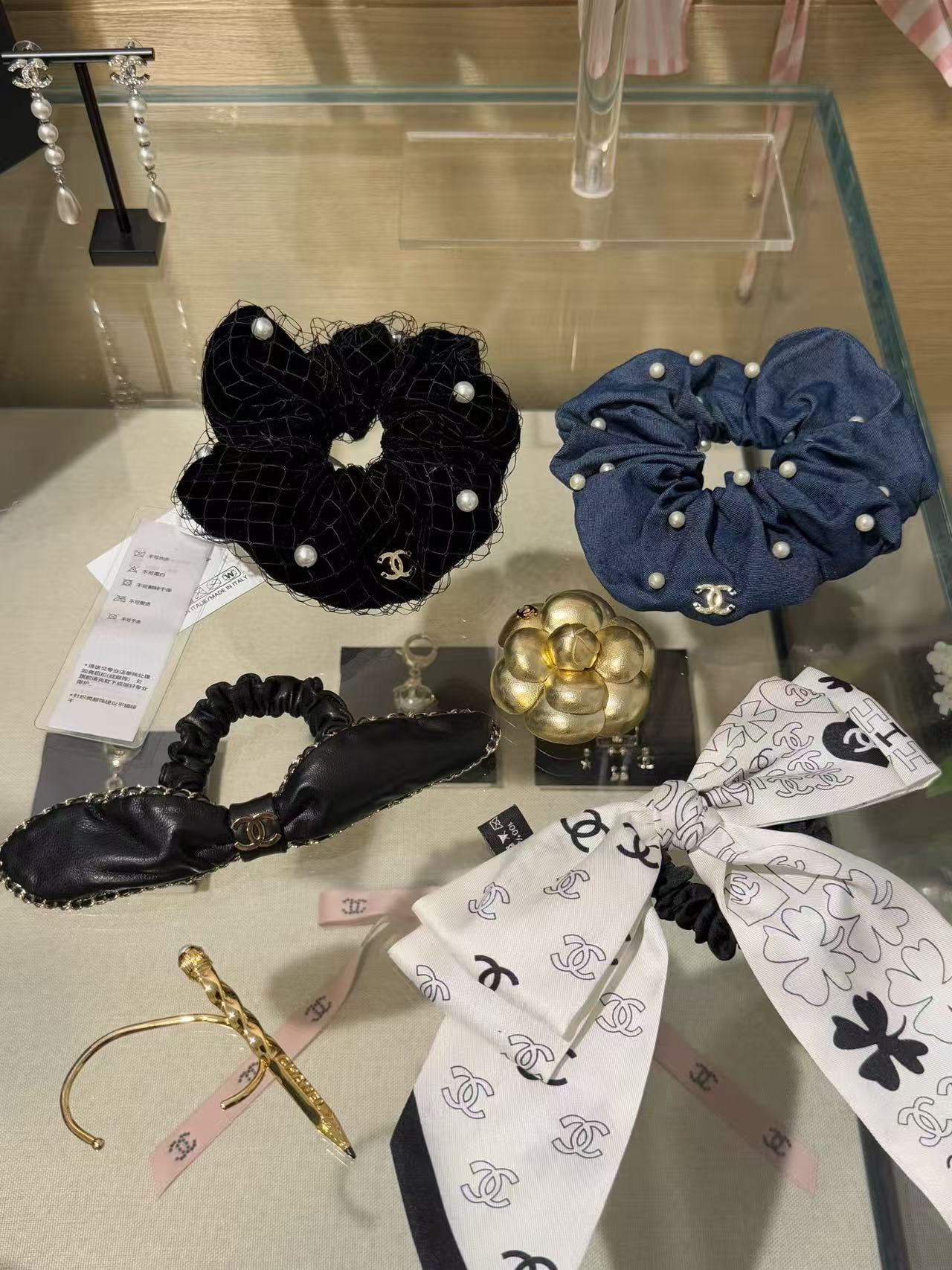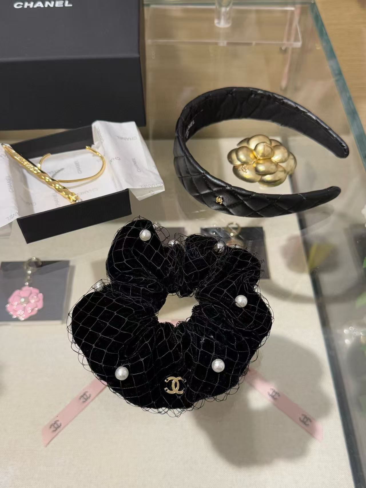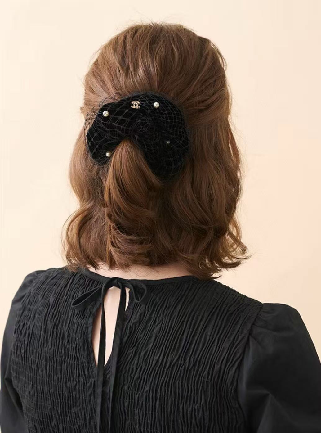 2025早秋 Chanel  黑絲絨網紗珍珠大髮圈 精品 高仿