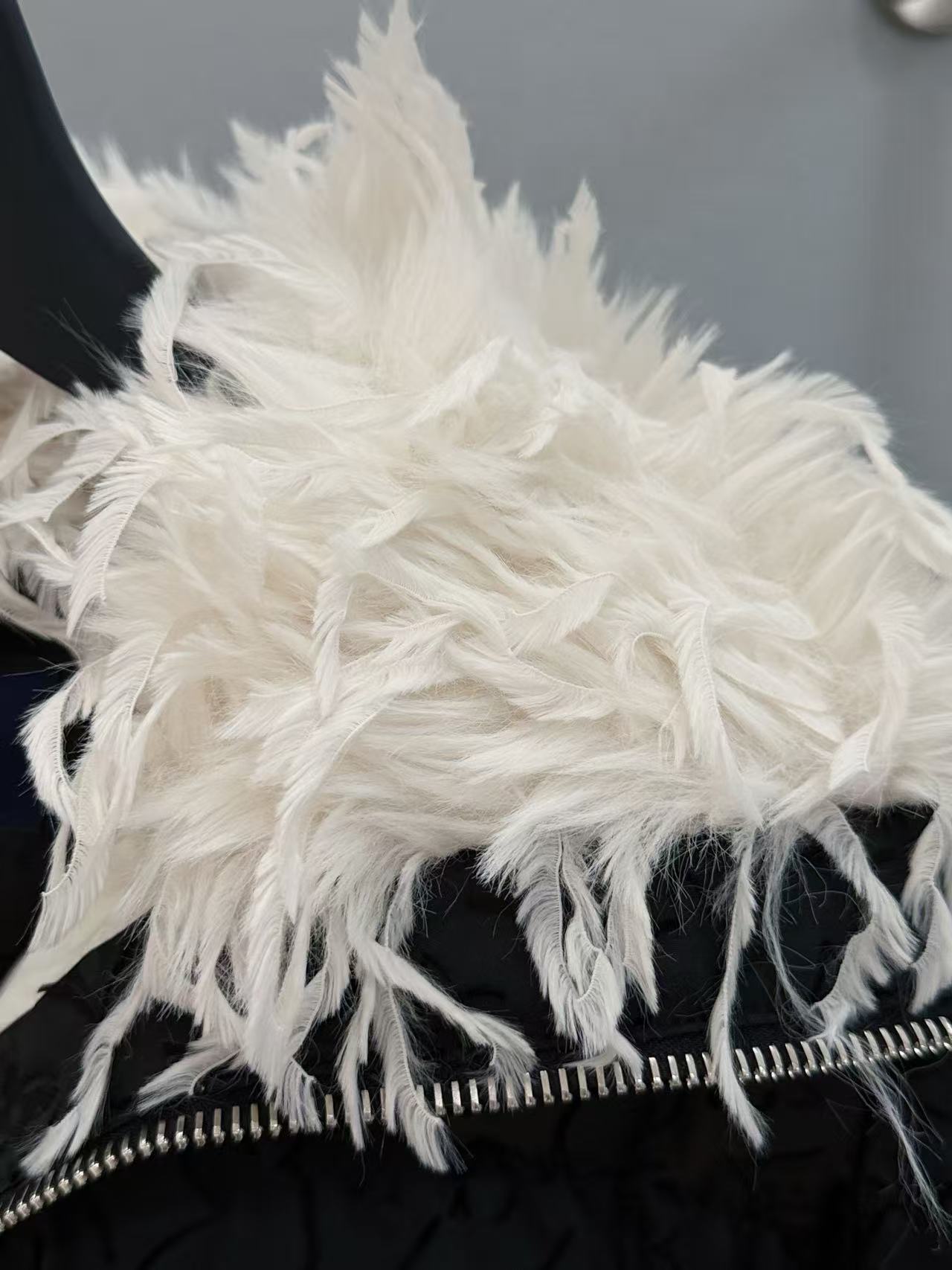 原單高蓬鬆羽絨填充:優選鵝絨,蓬鬆度爆表,保暖性能一級棒,領口羽毛設計不僅靈動保暖,還能鎖住頸部熱度,零下環境也暖到骨子裡,活動自如不臃腫!